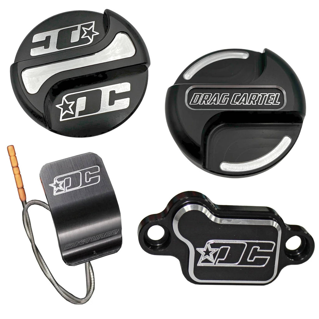 DRAG CARTEL K-Series Billet Oil Cap, Billet Oil Dip Stick, and OEM VTC Strainer Replacement Combo.