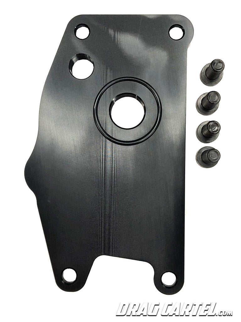 DRAG CARTEL Water Pump Plate Is Constructed Of 8620 Billet Machined Aluminum and Hard Anodized Black For Style & Strength
